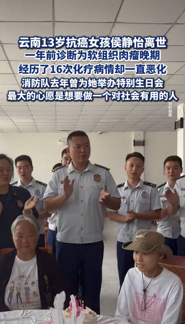 2024年初,当地消防队员得知了静怡的故事。在她生日那天,消防队特意为她举办了一场特别的生日会。那天,穿着制服的消防员叔叔们为她唱生日歌,静怡戴着生日帽,许下了"长大后要帮助更多人"的心愿。这份温暖,成为她病中最明亮的记忆。