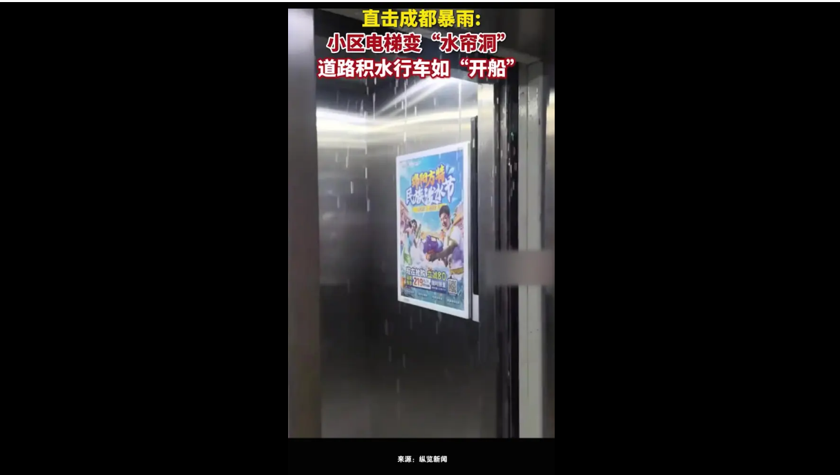 四川成都 遭遇 暴雨 天气 小区 电梯